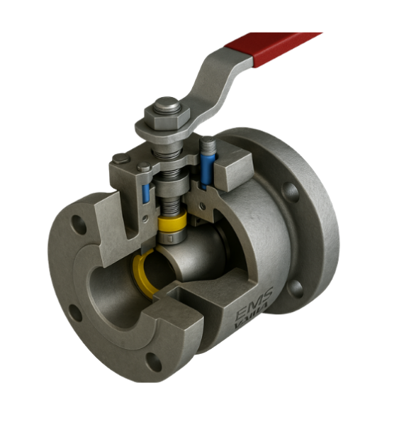 Sayaç flanşları, cıvatalama ve contalarla tamamlanmış küresel vana